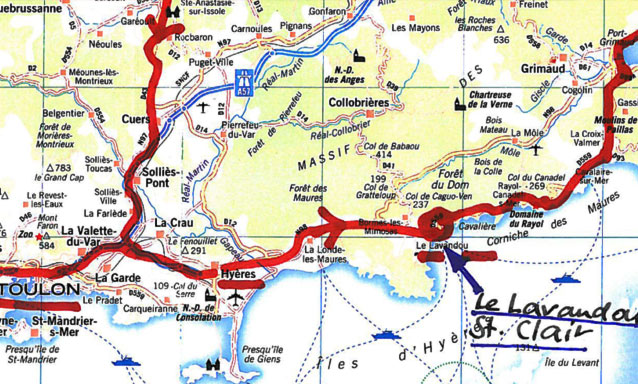 über Hyères nach La Londe, Lavandou nach St.Clair.